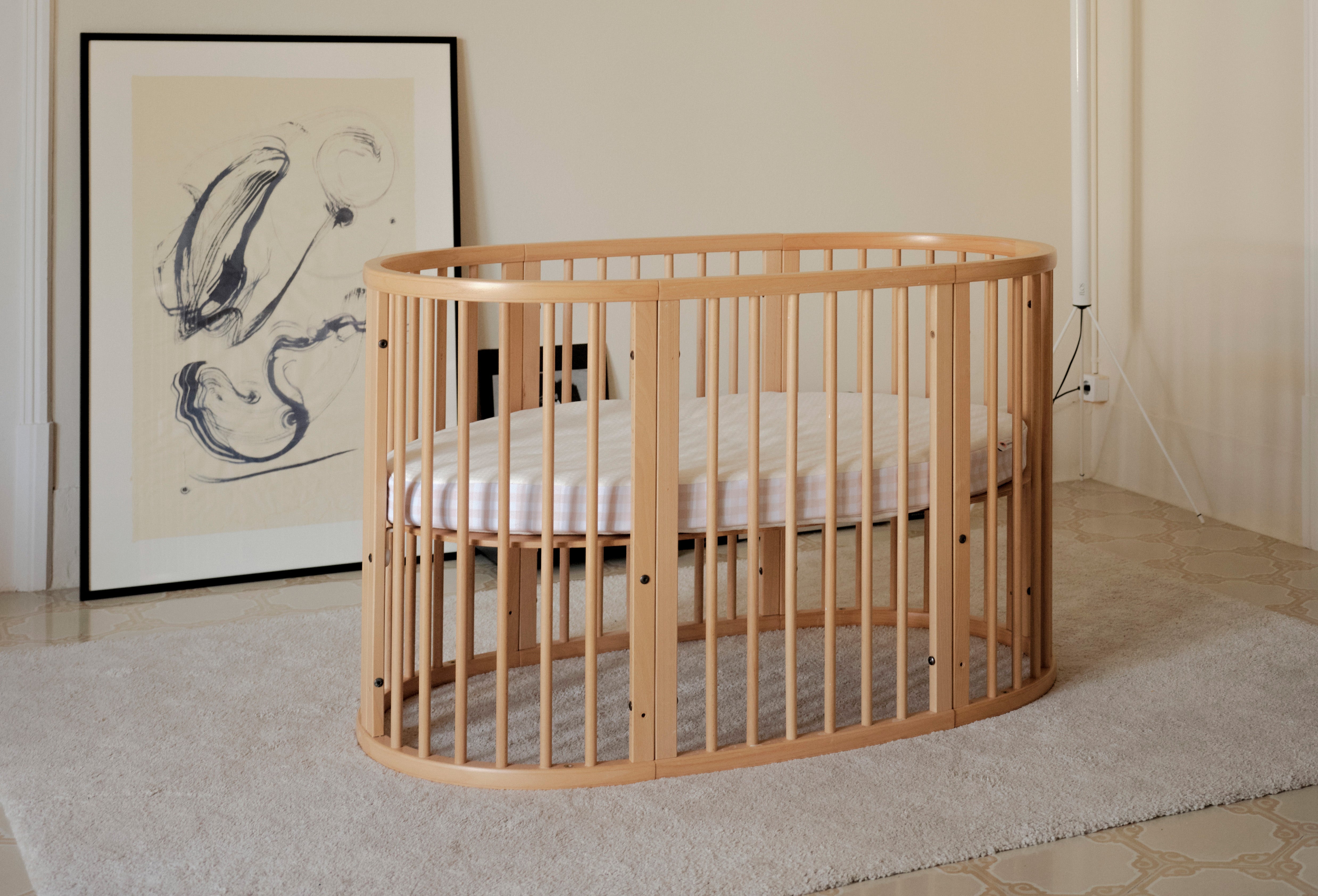 La cuna Stokke Sleepi es una de las más elegidas por los papás que buscan una opción evolutiva y de diseño para su bebé. Su característica forma ovalada la hace única, y acompaña al peque desde recién nacido hasta los primeros años.